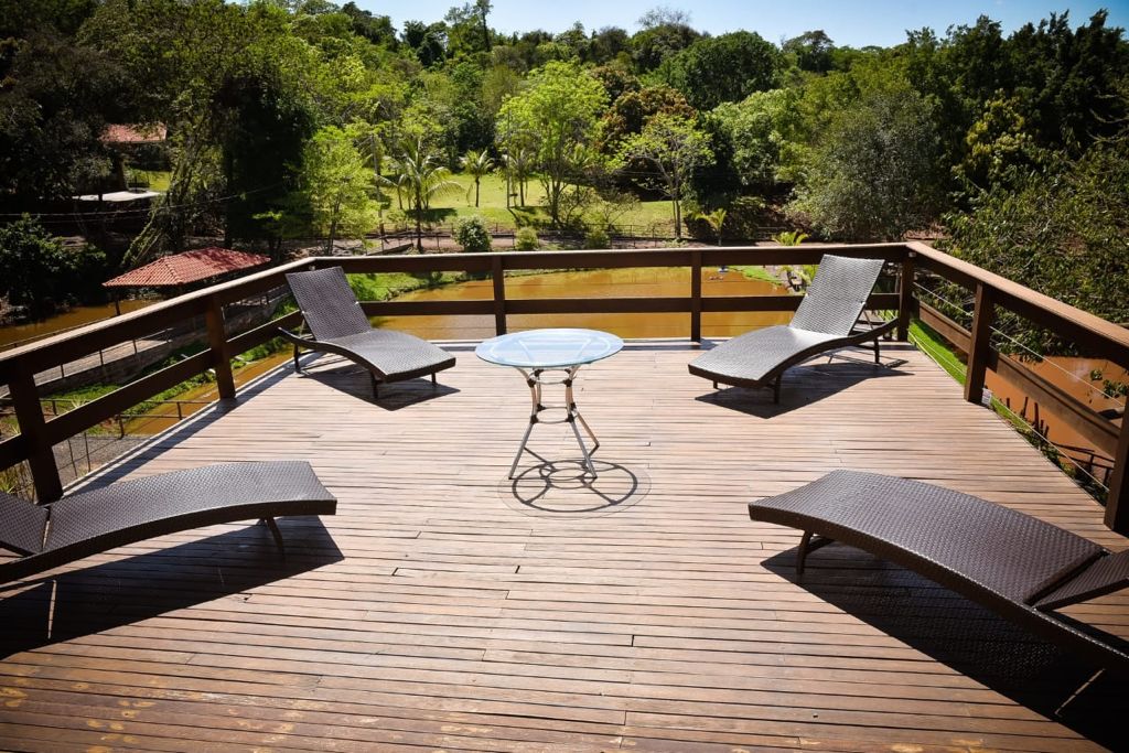 Nossa área da piscina é ampla, oferecendo um espaço de lazer e relaxamento em contato com a natureza. Contamos com cuidados constantes de limpeza e segurança, garantindo momentos de descontração com conforto e tranquilidade para todos.
